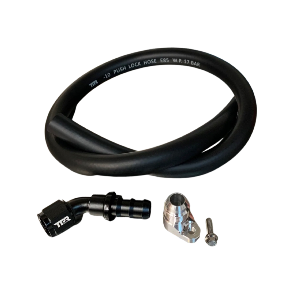 TPR offers a "Race Spec" line kit to remove the old oem breather line and plastic fitting in the valve cover for a much cleaner and more reliable pushlock fitting and hose assembly. We highly recommend this option if you're looking to clean up or simplify the engine bay on your car. Please select if you want the line upgrade kit or want to use the stock line.